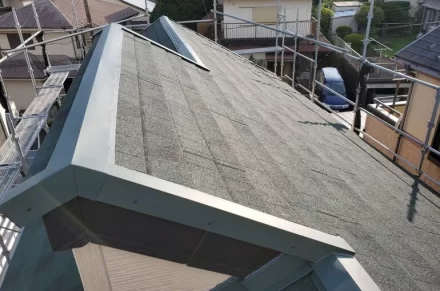 使用した屋根材は、石付き鋼板のディプロマットスター(カラー:エバーグリーン)です。