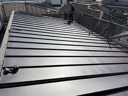 立平ロックは縦葺き設計で棟から軒先まで直線的で、ビスや継ぎ目が隠れ滑らかでモダンな外観。箱型やシンプルモダンな都市型住宅に調和するシャープな美しさが特徴です。